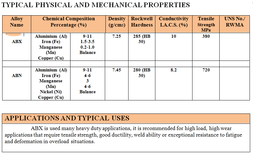 ABX, ABN – ALUMINIUM BRONZE